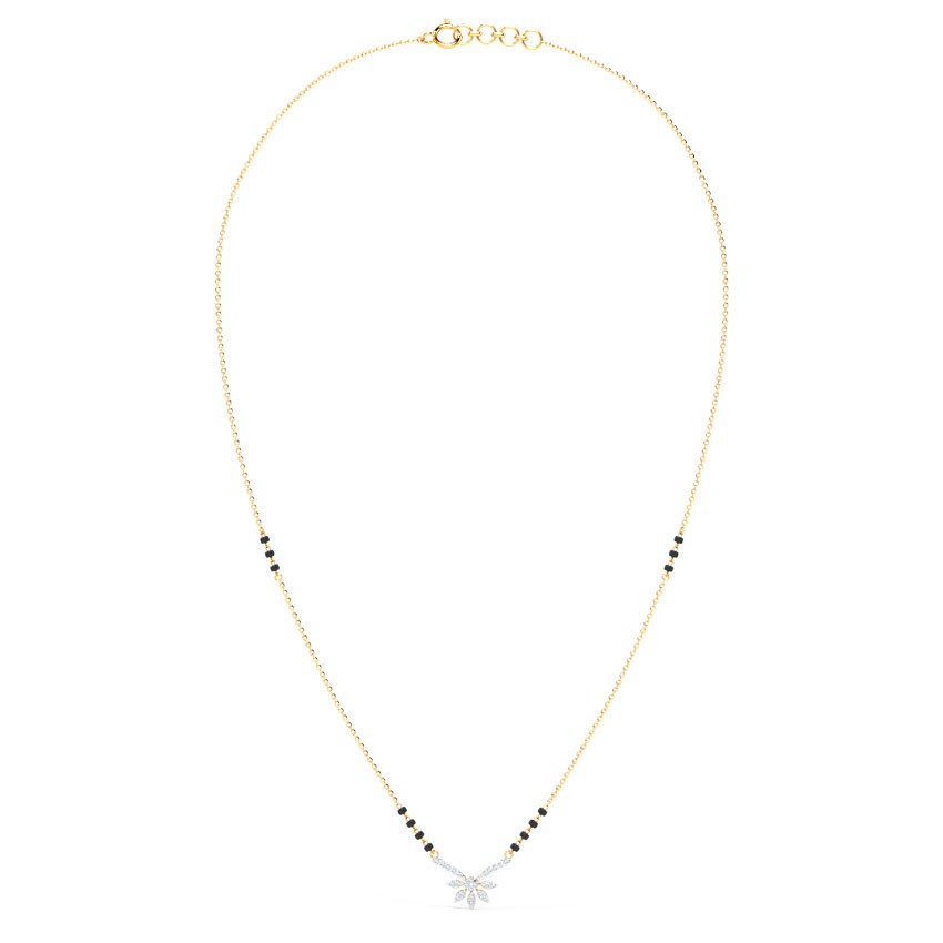 The Tania Diamond Mangalsutra by Innocence Diamond stands as the epitome of timeless elegance and beauty. Meticulously crafted in 14KT yellow gold and adorned with diamonds in a petal design, this mangalsutra harmoniously marries tradition with modernity. Whether for daily wear or special occasions, it elevates any ensemble with sophistication. Essential for every married woman who values both style and tradition, this piece transcends mere adornment, reflecting your distinct style and dedication. Secure yours today on Innocence Diamond.